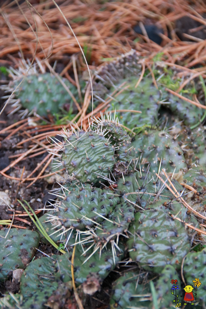 mūžzaļi, lapveida stumbra posmi klāti ar adatām